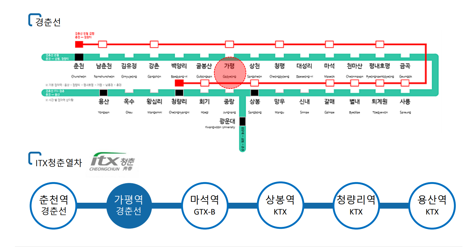 가평역 경춘선을 이용하면 서울까지 1시간 내에 접근이 가능합니다.