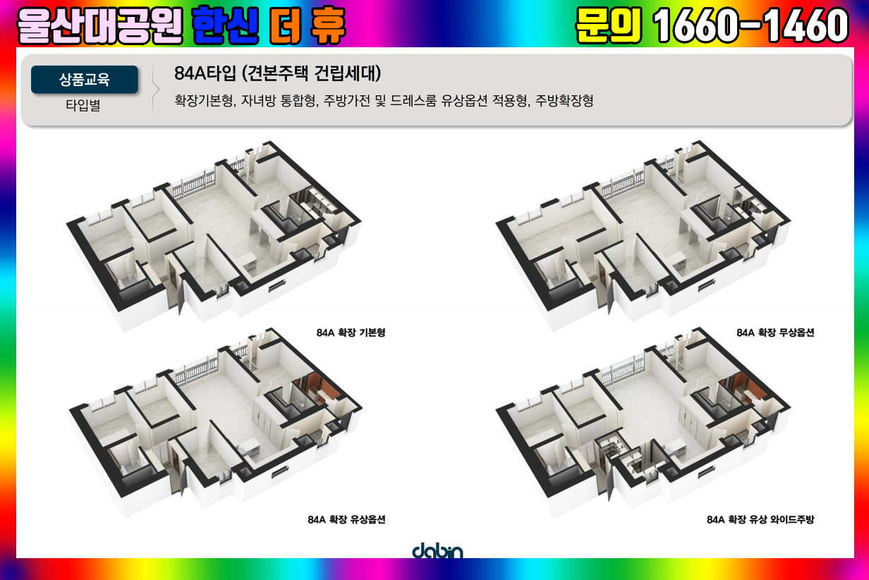 84A 타입도 모델하우스에 나오시면 직접 관람이 가능하십니다. 모델하우스는 예약제로 운영중에 있습니다. 방문하시기전에 예약전화를 주시면 담당 상담사가 모델하우스 주소와 약도를 문자로 보내드립니다. 감사합니다.
