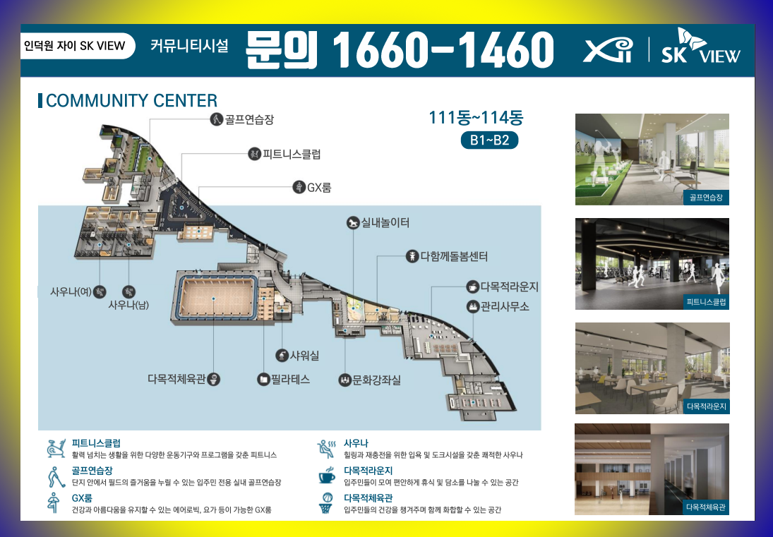 그외 시설로는 골프연습장과 피트니스클럽 GX룸 실내놀이터 필라테스 다목적체육관과 더불어 문화강좌실 다함께돌봄센터 등이 설치될 예정입니다.