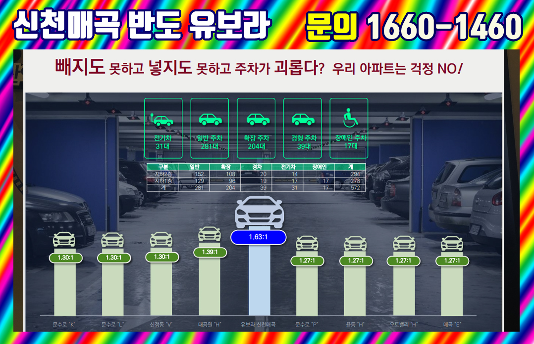 전기차 31대 일반주차 281대 확장주차 204대 등 주차때문에 스트레스 받으실 일은 걱정안하셔도 좋겠습니다.
