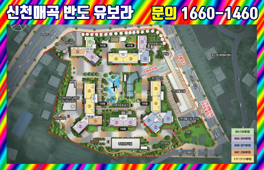 대지면적 5589평에 64타입 84 A,B,C타입 117타입 으로 총 5개 타입으로